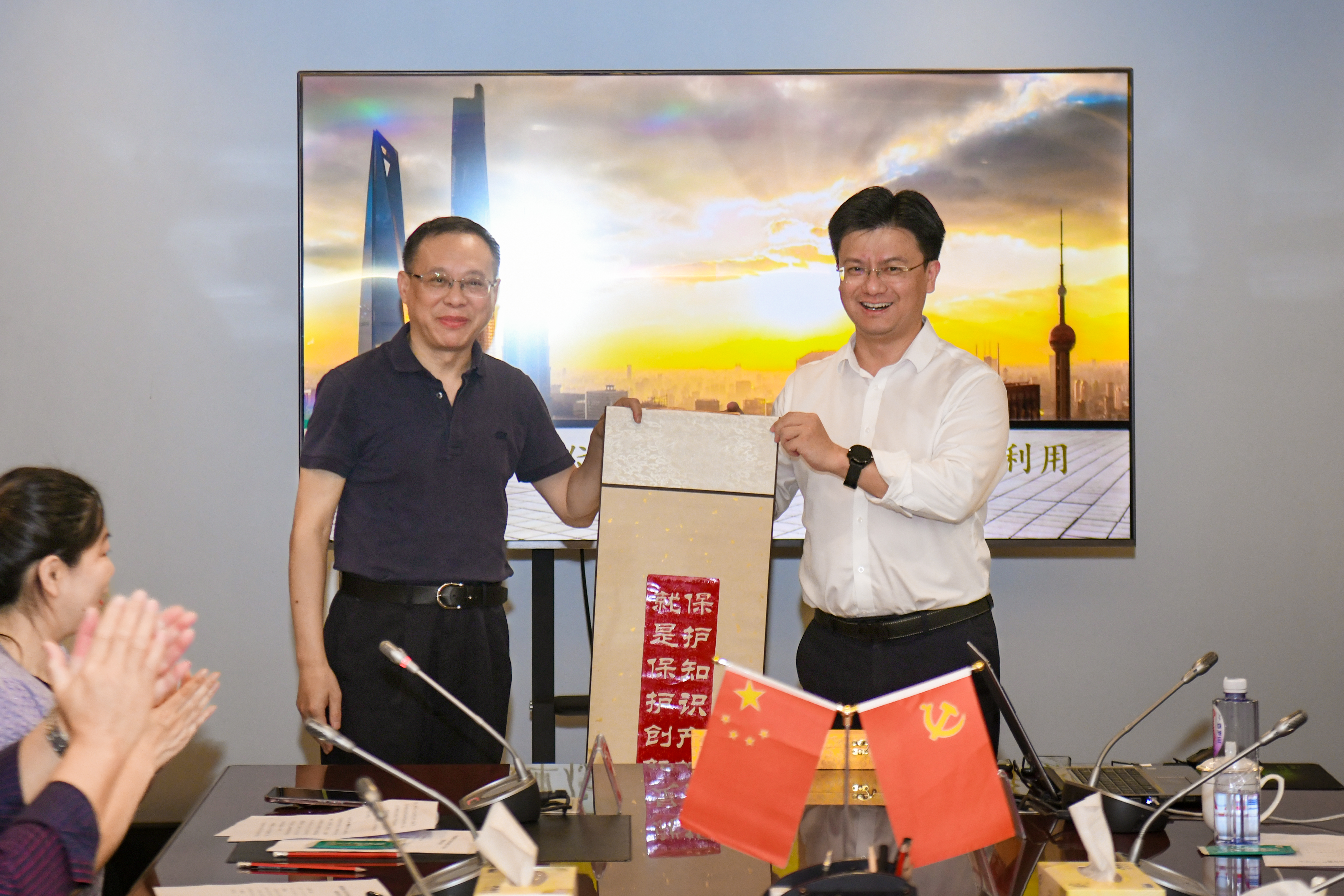 會上,郭國中主任向集團捐贈習近平總書記關于知識產權的重要指示“保護知識產權就是保護創新”的雕版卷軸,集團黨委書記、董事長、總經理章理中代表集團接收捐贈。