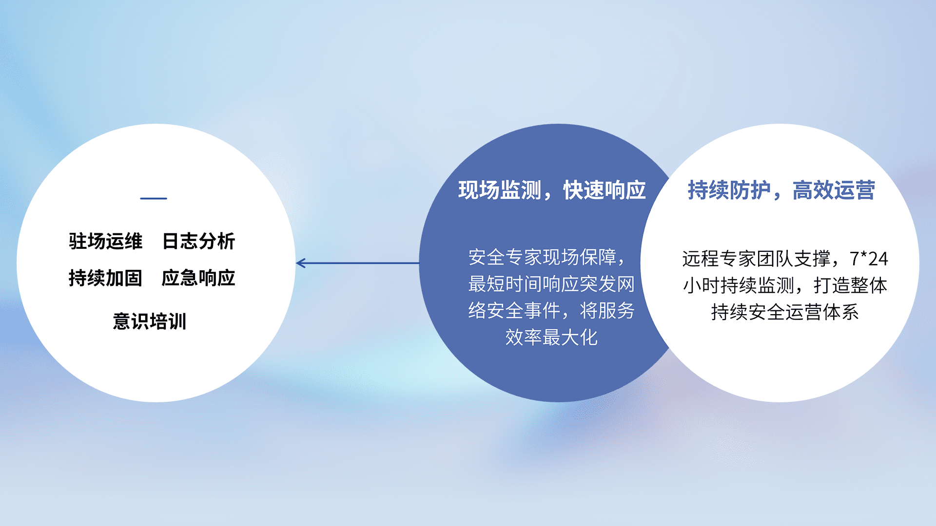 7X24小时持续监测安全事件,保持安全策略有效性,降低资产脆弱性风险,,精准拦截黑客攻击,,减少被黑客利用的机会,,,第一时间遏制,,,降低损失。。。。